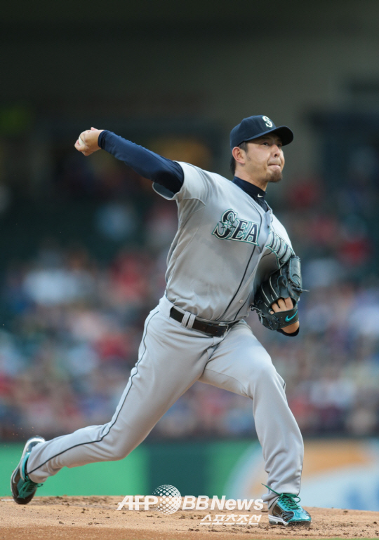 | 19일 텍사스전에 선발 등판한 시애틀 매리너스의 이와쿠마 히사시. ⓒAFPBBNews = News1 |