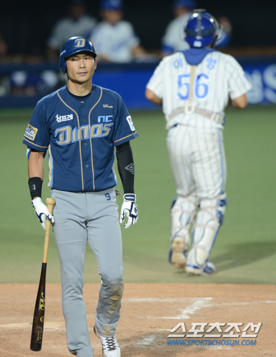 NC 김종호가 주루 플레이를 하다가 부상으로 교체 됐다.