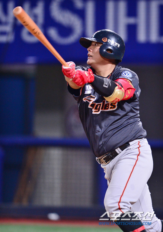 16일 오후 포항 야구장에서 2015 프로야구 삼성과 한화의 경기가 열렸다. 5회초 1사 만루서 한화 김태균이 2타점 중전안타를 치고 있다. 포항=김경민 기자 kyungmin@sportschosun.com