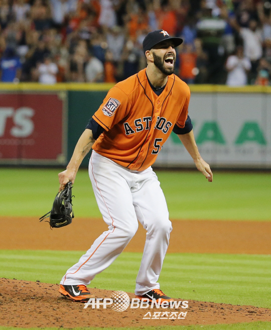 메이저리그 휴스턴 애스트로스의 우완 선발투수 마이크 파이어스가 22일(한국시각) 미국 텍사스주 휴스턴 미닛메이드 파크에서 열린 LA다저스와의 홈경기에 선발 등판해 9이닝 동안 볼넷 3개만 내주며 노히트노런 승리를 따냈다. 이는 휴스턴 역사상 11번째이자, 지난 2000년 미닛메이드파크 개장 이후 16년 만에 처음으로 나온 노히트노런 승리였다. 노히트 노런을 달성한 뒤 글러브를 벗은 채 환호하는 파이어스. ⓒAFPBBNews = News1