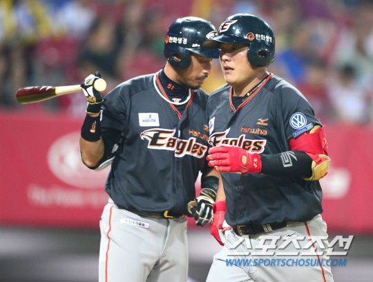23일 광주 KIA 챔피언스필드에서 KBO리그 한화와 KIA의 주말 2연전 두 번째 경기가 열렸다. 전날 경기에서 승리한 한화는 KIA와 0.5 게임차로 5위를 향한 치열한 순위 다툼을 벌이고 있다. 한화 탈보트와 KIA 스틴슨이 선발 맞대결을 펼쳤다. 한화 김태균이 6회 KIA 스틴슨을 상대로 솔로홈런을 날렸다. 득점하며 김경언과 하이파이브를 나누고 있는 김태균. 광주=송정헌 기자 songs@sportschosun.com