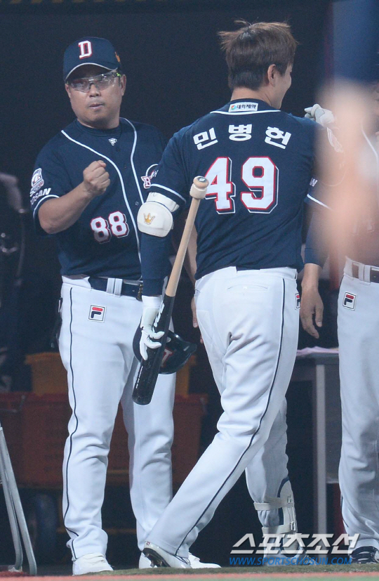 김 감독은 경기 후 "이현호, 김명성, 함덕주 등 젊은 투수들이 잘 던져줬다. 특히 김명성이 공도 낮고 제구도 좋아졌다. 앞으로 기대를 하게 한다. 김명성의 데뷔 첫 승을 축하한다. 최근 선수들이 긴장을 해 제 실력이 안나오는데, 조금 더 편안하게 한다면 좋은 결과가 나올 것 같다. 선수들 모두 수고했다"고 밝혔다.