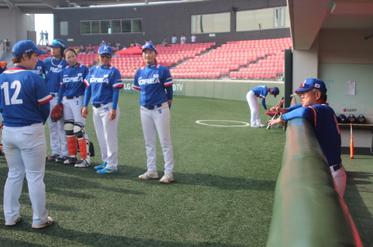 여자야구대표팀은 22, 23일 양일간 이천 LG챔피언스파크에서 실전과 훈련을 소화했다. 22일에는 양승호 인스터럭터를 비롯해 선동열 전 KIA 타이거즈 감독, 김용달 전 KIA 코치의 재능기부로 지도를 받았다. 안경현 SBS 스포츠 해설위원도 대표팀 선수들을 도왔다. 이어 남자 사회인 야구팀과의 실전 대결도 치렀다. 23일에는 대회에 참가하는 한국B팀과 함께 합동 훈련과 자체 연습경기를 진행했다.