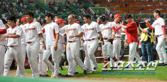 그러나 6회말 정의윤의 솔로포로 한 점을 만회한 SK는 8회말 무사 1,3루 찬스에서 최 정의 병살타때 한 점을 추가해 2점차로 따라붙었다. 이어 9회말 박정권의 내야안타와 대타 조동화의 우전안타로 만든 1사 1,2루서 정상호가 윤석민을 상대로 좌측 담장을 크게 넘어가는 스리런 홈런을 날리며 극적인 끝내기 역전승을 거뒀다.