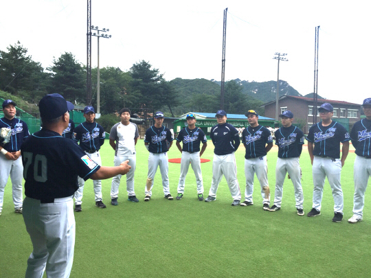 | 경기후 선수단 미팅 모습. 사진제공=연천 미라클 |