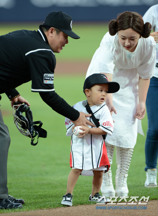 kt와 KIA의 2015 KBO 리그 경기가 27일 수원 kt위즈파크에서 열렸다. 경기 전 SBS '오 마이 베이비'의 손주안 군이 시구를 하고 있다.수원=허상욱 기자 wook@sportschosun.com/2015.08.27/