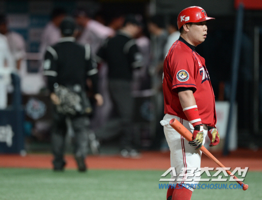 | kt와 KIA의 2015 KBO 리그 경기가 27일 수원 kt위즈파크에서 열렸다. kt가 5대3으로 승리하며 2연패에서 탈출했다. 경기 종료 후 마지막 판정에 대해 아쉬움을 표출하는 나지완의 모습. 수원=허상욱 기자 wook@sportschosun.com/2015.08.27/ |