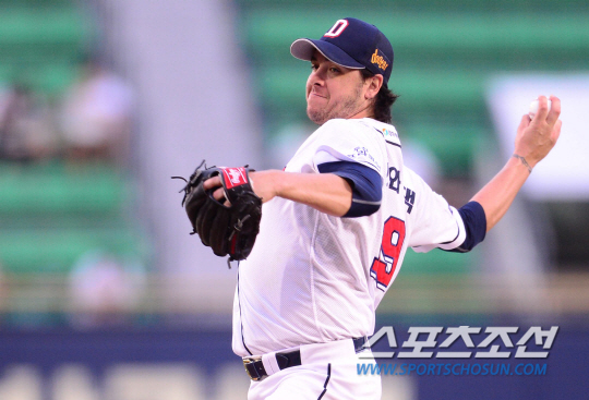 1일 오후 서울 잠실야구장에서 2015 프로야구 SK와 두산의 경기가 열렸다. 두산 선발투수 스와잭이 힘차게 볼을 던지고 있다.