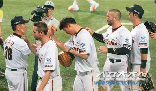 김성근 감독은 "선발 안영명이 잘 던졌다. 3회말 폭스의 홈런이 컸다. 구장이 작아 폭수를 지명타자로 기용했는데, 역할을 잘 해줬다"고 했다. 청주=민창기 기자 huelva@sportschosun.com