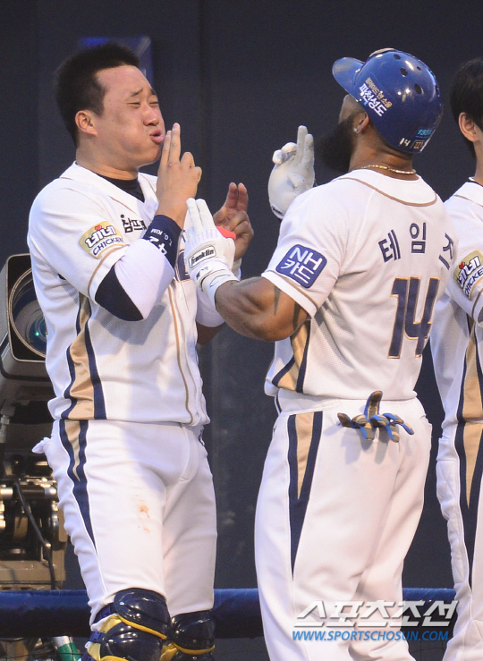 테임즈는 4일 창원 두산전에 4번 타자 1루수로 선발 출전해 팀이 1-5로 뒤지던 8회 1사 후 함덕주의 직구를 밀어쳐 가운데 담장을 넘겼다. 전날 2방의 대포로 40홈런 고지에 오른 그는 좋은 타격감을 이어갔다. 무엇보다 올 시즌 함덕주에게 6타수 무안타, 삼진만 4차례 당했지만 가운데 실투를 공략해 대포로 연결하며 포효했다.