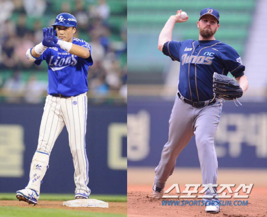 | ◇올해 눈부신 활약을 펼치고 있는 삼성 이승엽과 NC 해커. 둘은 8월 최고 타자, 최고 투수상을 받았다. 스포츠조선DB |