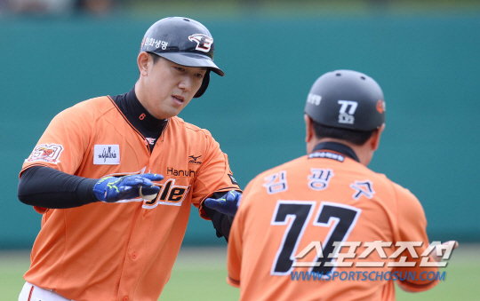 KBO리그 한화이글스와 두산베어스의 경기가 6일 대전 한화이글스파크에서 열렸다. 한화 김회성이 2회말 1사 1,2루에서 좌월 3점 홈런을 치고 그라운드를 돌고있다. 대전=최문영 기자 deer@sportschosun.com /2015.09.06/ |