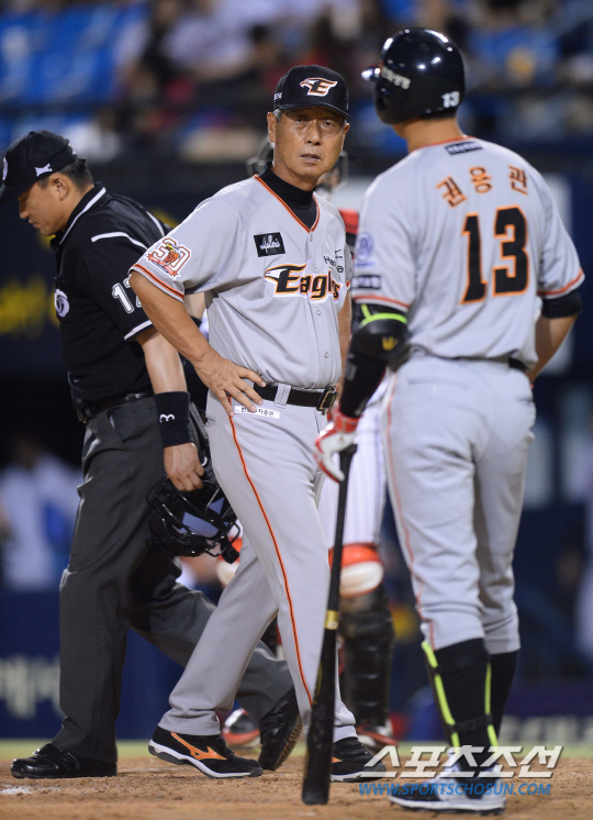 심판은 파울 선언을 했다. 그러자 양상문 감독과 김성근 감독이 차례로 덕아웃에서 나와 항의했다. 양 감독은 수비 방해, 김 감독은 타격 방해라고 주장했다. 이훈규 주심은 1루심 전일수씨 등과 논의한 끝에 파울 결정을 내렸다. 두 감독은 서로 불만스런 표정을 지었다. 심판은 타격 방해, 수비 방해 둘 다 아니라고 봤다. 애매한 판정을 내렸다.