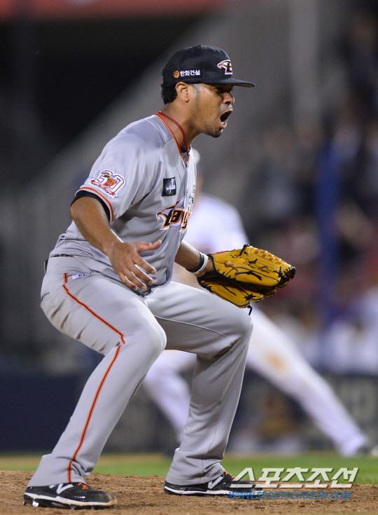 2015 KBO리그 LG트윈스와 한화이글스의 경기가 8일 서울 잠실야구장에서 열렸다. 한화 로저스가 LG 8회말 2사 1,3루에서 대타 이병규를 삼진처리하며 포효하고 있다. 잠실=최문영 기자 deer@sportschosun.com /2015.09.08/