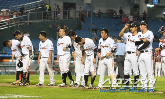 2015 KBO리그 한화이글스와 넥센히어로즈의 경기가 3일 대전 한화이글스파크에서 열렸다. 한화 선수들이 넥센을 상대로 7대 12로 패한후 관중들을 향해 답례하고 있다. 대전=최문영 기자 deer@sportschosun.com /2015.09.03/