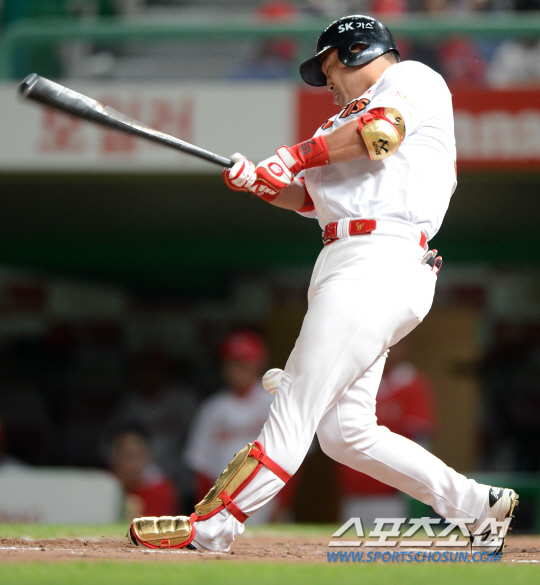 SK와 롯데의 2015 KBO 리그 경기가 9일 인천 SK행복드림구장에서 열렸다. 4회말 SK 정의윤이 자신의 타구를 다리에 맞고 있다. 인천=허상욱 기자 wook@sportschosun.com