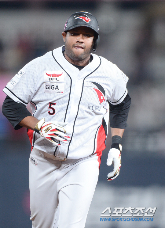 10일 수원 케이티위즈파크에서 KBO리그 kt 위즈와 LG 트윈스의 경기가 열렸다. kt 정성곤과 LG 우규민이 선발 맞대결을 펼쳤다. kt 마르테가 6회 LG 선발 우규민에게 동점 솔로홈런을 날렸다. 힘차게 그라운드를 돌고 있는 마르테. 수원=송정헌 기자 songs@sportschosun.com