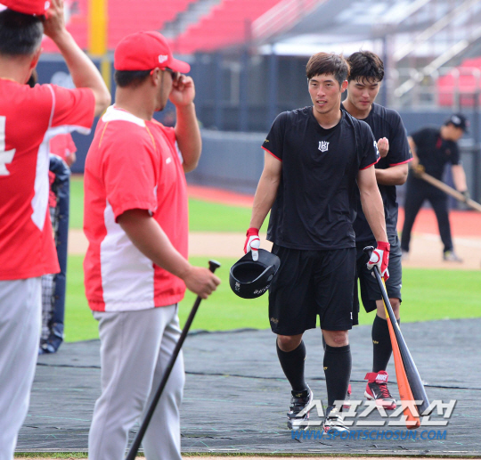 30일 경기도 수원KT위즈파크에서 열릴 2015 프로야구 SK와의 경기에 앞서 KT 김사연이 SK 선수들에게 인사하고 있다. 수원=김경민 기자 kyungmin@sportschosun.com