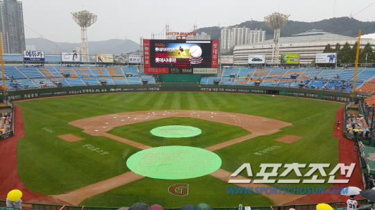 롯데 자이언츠와 한화 이글스의 경기가 비로 인해 중단됐다.