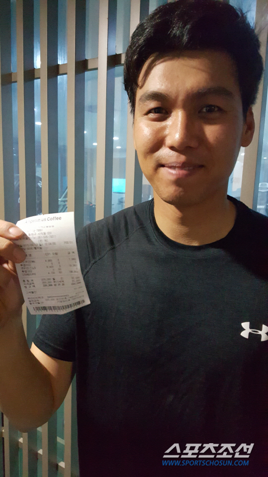 김문호는 13일 부산 한화 이글스전을 앞두고 한 손에 종이 한장을 든 채 의기양양하게 라커룸으로 들어왔다. 손에 쥐어진 종이는 커피 구매 영수증. 김문호는 "약속을 지키게 돼 기분이 좋다"며 밝게 웃었다.