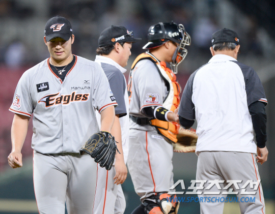 15일 광주기아챔피언스필드에서 KBO리그 KIA 타이거즈와 한화 이글스의 2연전 첫 번째 경기가 열렸다. 한화 선발 김민우가 4회 2사에서 마운드를 내려왔다. 아쉬운 표정으로 강판하고 있는 김민우. 광주=송정헌 기자 songs@sportschosun.com/2015.09.15 |