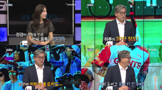 두산 사령탑 시절 '커피 감독'으로 유명했던 스카이스포츠 김진욱 야구 해설위원이 여전한 커피 사랑을 과시했다.