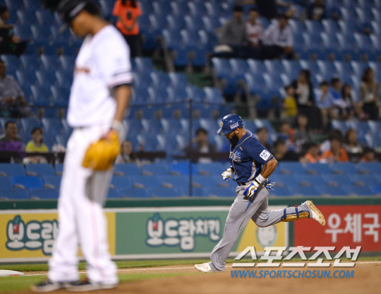18일 대전 한화생명이글스파크에서 KBO리그 한화 이글스와 NC 다이노스의 2연전 두 번째 경기가 열렸다. NC는 5연승을 기록 중이며 한화는 2연패에 빠져있다. 3회 NC 테임즈가 한화 로저스를 상대로 시즌 43호 솔로홈런을 날렸다. 힘차게 그라운드를 돌고 있는 테임즈. 대전=송정헌 기자 songs@sportschosun.com