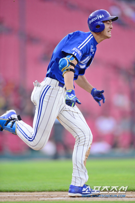 13일 오후 광주 기아챔피언스필드에서 2015 프로야구 삼성과 KIA의 경기가 열렸다. 2회초 1사 2루서 삼성 구자욱이 내야 땅볼을 친 후 힘차게 1루로 뛰어나가고 있다. 광주=김경민 기자 kyungmin@sportschosun.com