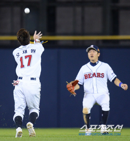 2015 KBO리그 두산 베어스와 롯데 자이언츠의 경기가 17일 서울 잠실야구장에서 열렸다. 두산 2루수 오재원이 롯데 9회말 1사 1,2루에서 박종윤의 플라이를 잡아내고 있다. 잠실=최문영 기자 deer@sportschosun.com
