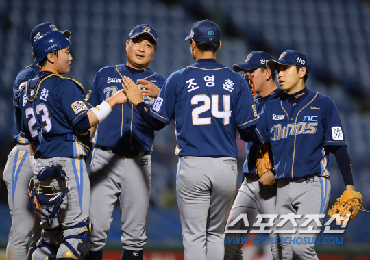 18일 대전 한화생명이글스파크에서 KBO리그 한화 이글스와 NC 다이노스의 2연전 두 번째 경기가 열렸다. NC가 한화에 15대2 대승을 거두며 6연승을 달렸다. 반면 한화는 에이스 로저스가 선발 등판했으나 3이닝 6실점 부진하며 3연패를 당했다. 경기 종료 후 하이파이브를 나누고 있는 NC 선수들. 대전=송정헌 기자 songs@sportschosun.com