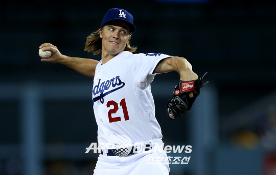 | LA 다저스 잭 그레인키가 종아리 부상으로 24일(이하 한국시각) 애리조나 다이아몬드백스와의 홈경기 등판이 취소됐다. 이에 따라 메이저리그에서 가장 먼저 20승 고지를 밟은 시카고 컵스의 제이크 아리에타와의 사이영상 싸움은 더욱 치열해질 전망이다. 지난 19일 피츠버그 파이어리츠전에서 투구를 하고 있는 그레인키. ⓒAFPBBNews = News1 |