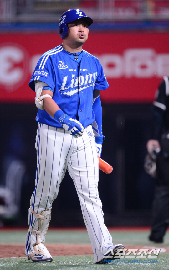 23일 오후 수원 KT위즈파크에서 2015 프로야구 삼성과 KT의 경기가 열렸다. 7회초 2사 1루서 삼성 박한이가 삼진 아웃된 후 아쉬워하고 있다. 박한이는 2회초 좌전안타를 치며 15년 연속 100안타를 기록했다. 양준혁에 이어 KBO 두 번째 기록 수원=김경민 기자 kyungmin@sportschosun.com / 2015.09.23.