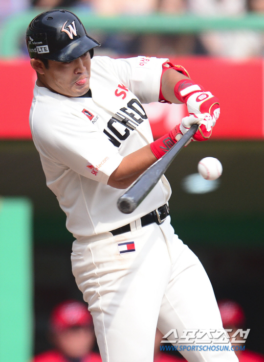 SK 정의윤이 25일 인천 삼성전에서 선제 투런홈런을 터뜨렸다. 재근 기자 cjg@sportschosun.com