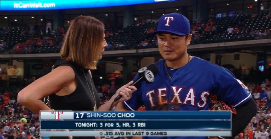 추신수는 팀이 3-0으로 앞선 4회초 세 번째 타석에서 상대 선발 스캇 카즈미어를 상대로 투런포를 뽑아냈다. 카즈미어의 변화구를 힘들이지 않고 앞 타점에서 잡아당겼고, 일직선으로 날아간 공은 우측 파울 폴대 살짝 안쪽으로 들어가 홈런이 됐다. 이밖에 추신수는 5타수 3안타 3타점 1득점으로 맹활약 했다.