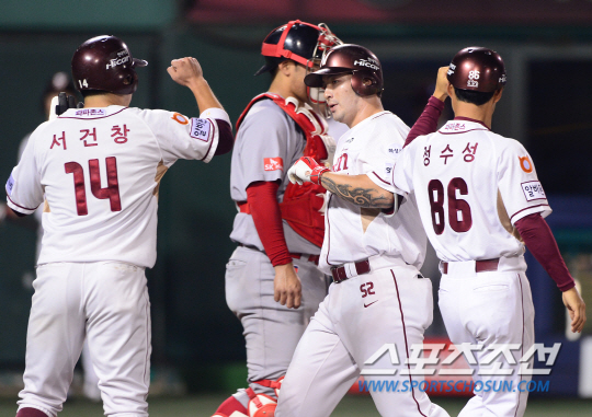 24일 서울 목동구장에서 KBO리그 넥센과 SK의 경기가 열렸다. 넥센 김상수와 SK 켈리가 선발 맞대결을 펼쳤다. 박병호가 6회 무사 2루에서 SK 켈리를 상대로 시즌 51호 투런홈런을 날렸다. 홈에서 하이파이브를 나누고 있는 박병호. 목동=송정헌 기자 songs@sportschosun.com/2015.09.24