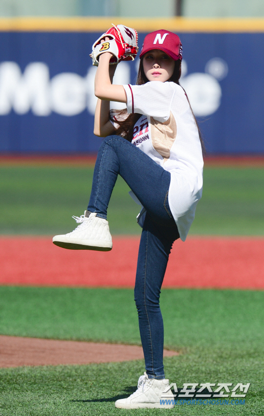 2015 프로야구 kt 위즈와 넥센 히어로즈의 경기가 27일 목동구장에서 열렸다. 경기 전 크레용팝 웨이가 시구를 하고 있다. kt는 선발투수로 시즌성적 3승 6패 방어율 5.04의 저마노를 내세웠다. 넥센에서는 2승 방어율 1.33의 양훈이 선발 등판했다. 목동=정재근 기자 cjg@sportschosun.com/2015.09.27/ |