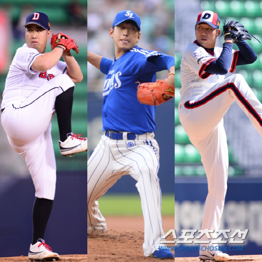 | 예년보다 경기수가 늘어나면서 시즌 막판 토종 에이스들이 나란히 부진하고 있다. 왼쪽부터 유희관, 윤성환, 장원준. 스포츠조선 DB. |