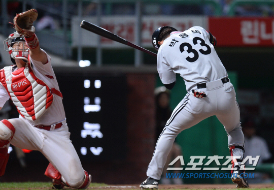 2015 KBO리그 SK와이번즈와 LG트윈스의 경기가 30일 인천SK행복드림구장에서 열렸다. LG 박용택이 7회초 2사후 SK 신재웅으로 부터 헤드샷을 당하고 있다. 문학=최문영 기자 deer@sportschosun.com /2015.09.30/ |