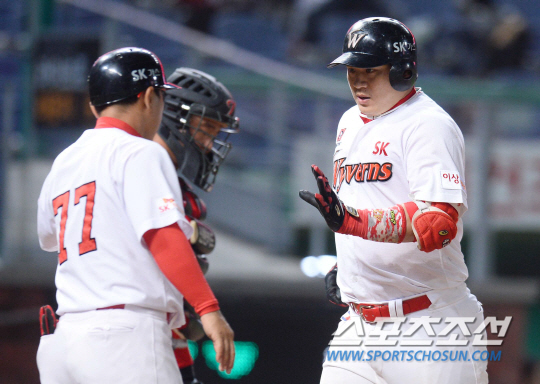 2015 KBO리그 SK와이번즈와 LG트윈스의 경기가 30일 인천SK행복드림구장에서 열렸다. SK 정상호가 7회말 2사 1,2루에서 좌월 3점 홈런을 치고 홈인하고 있다. 문학=최문영 기자 deer@sportschosun.com /2015.09.30/