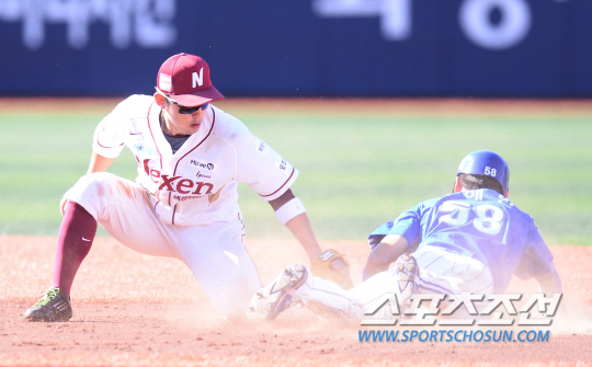2015 KBO리그 넥센히어로즈와 삼성라이온즈의 경기가 13일 서울 목동야구장에서 열렸다. 삼성 5회초 1사 1루 나바로 타석때 1루주자 박해민이 2루도루에 성공하고 있다. 목동=최문영 기자 deer@sportschosun.com