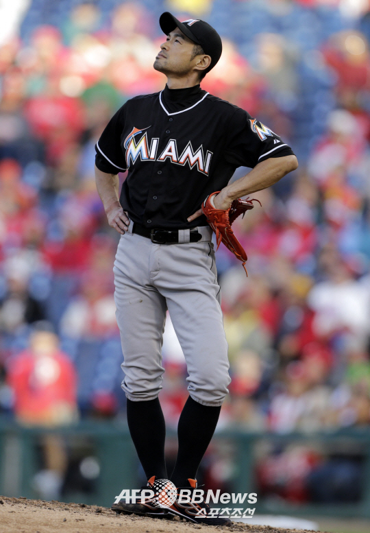 5일 필라델피아전 8회 깜짝 등판한 스즈키 이치로. ⓒAFPBBNews = News1