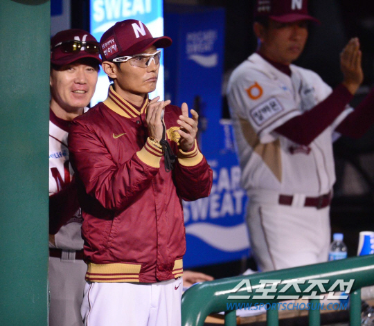 7일 오후 서울 목동야구장에서 2015 프로야구 와일드카드 결정 1차전 SK와 넥센의 경기가 열렸다. 연장 11회말 1사 2루서 넥센 스나이더의 1타점 적시타 때 염경엽 감독이 박수치고 있다. 목동=김경민 기자 kyungmin@sportschosun.com / 2015.10.07.