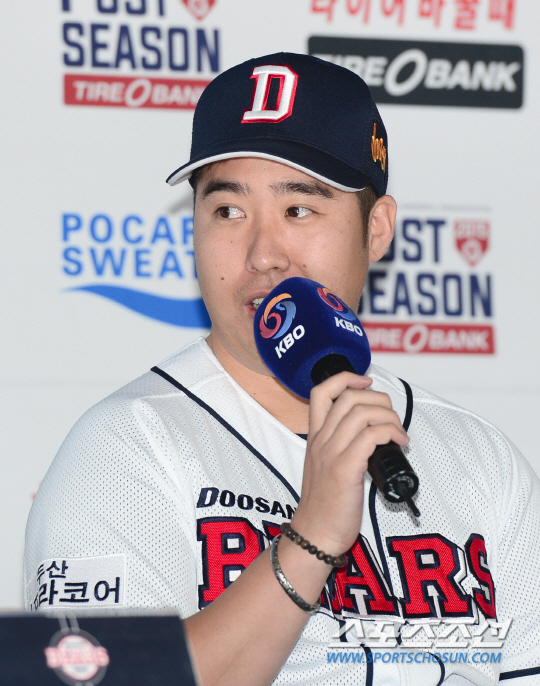 2015 프로야구 준플레이오프 넥센 히어로즈와 두산 베어스의 미디어데이가 9일 잠실구장에서 열렸다. 두산 유희관이 질문에 답하고 있다. 넥센과 두산의 준플레이오프는 5전 3선승제로 치러진다. 10일 잠실구장에서 1차전이 열린다. 잠실=정재근 기자 cjg@sportschosun.com