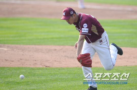 5회 넥센은 또 다시 수비 시프트를 가동했다. 그런데 초구, 오재일은 3루수 방면으로 푸시 번트를 댔다. 허를 찔린 넥센 수비였다. 투수 양 훈이 따라가 봤지만, 타구를 잡지 못했다. 3루수 김민성은 2루와 3루 1/3지점에 위치하고 있었다.