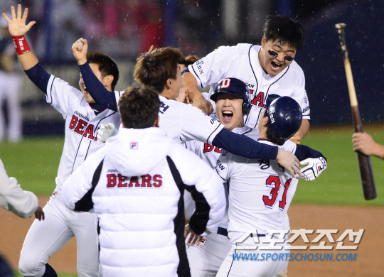 결국 그는 '사고'를 쳤다. 3-3 팽팽한 동점 상황. 10회 두산이 기회를 잡았다. 1사 2루에서 두산 김태형 감독은 아껴놨던 '박건우 카드'를 꺼냈다. 그는 침착했다 넥센 김태형의 3구째를 그대로 통타, 우중간을 빠지는 결승 안타로 만들어냈다. 포스트 시즌 첫 타석에서 그는 너무나 결정적인 역할을 했다. 대타 끝내기 안타는 준플레이오프 첫번째 일이다. 포스트 시즌을 통틀어도 두번째다.