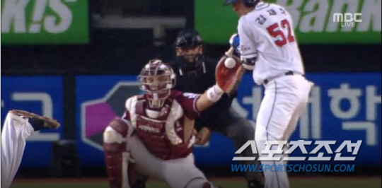 결국 문승훈 주심과 가까이 있던 넥센 포수 박동원도 판단하기 쉽지 않았다. 순간적으로 일어난 일이라 소리에 의지할 수밖에 없다. 결국 문 주심은 사구로 판단했다.