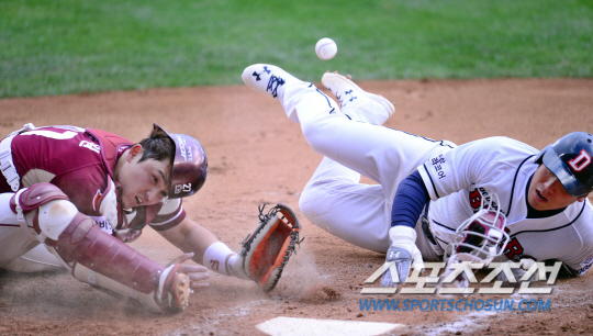 김현수는 그대로 박동원과 충돌했다. 무릎에 심한 충격이 있었다. 포구 이후 태그를 했지만, 박동원은 공을 그대로 흘렸다. 결국 홈에서 세이프.