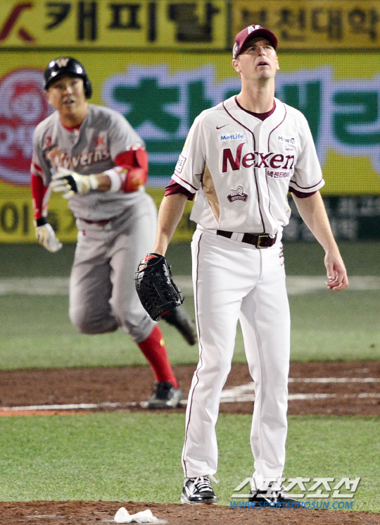 ◇자주 서봤다고 해서 꼭 유리한 것은 아니다. 넥센의 마지막 희망 밴헤켄에게도 목동구장은 작게 느껴질 수 밖에 없다. 두산 타자들도 목동만 오면 홈런수가 50% 증가했다. SK와의 와일드카드 결정 1차전. 5회초 2사 3루 SK 나주환에게 3루타를 허용한 넥센 밴헤켄이 타구를 보고 있다. 목동=정재근 기자 cjg@sportschosun.com/2015.10.07/