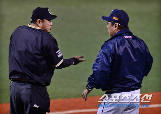 넥센 히어로즈와 두산 베어스의 준플레이오프가 열린 13일 목동구장. 두산 김태형 감독은 1회부터 심판 합의 판정을 쓰는 강수를 뒀다.