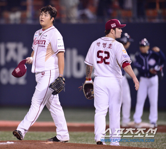 양의지에게도 빠른 볼을 뿌렸지만 이미 집중력이 최고조에 이른 양의지에게 구위가 떨어진 직구는 치기 좋은 공에 불과했다. 좌중간으로 떨어지는 2루타가 됐고 넥센 외야진의 실책까지 이어져 9-10으로 역전.